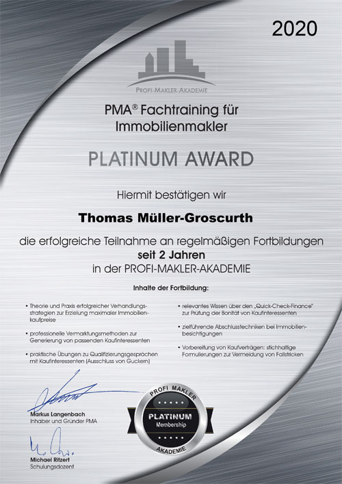 Makler München | Fachtraining für Immobilienmakler Gold Award